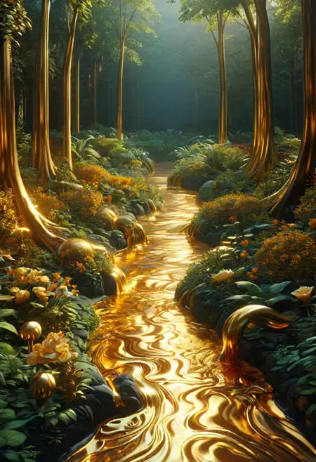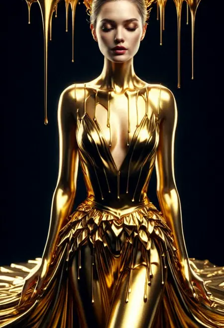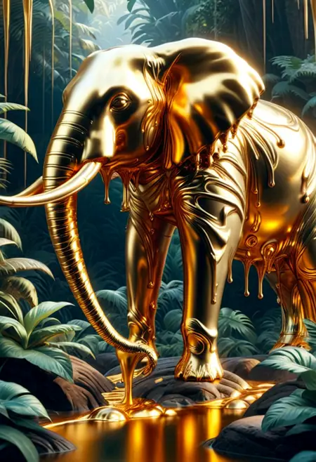 该模型旨在生成图像中的液态金色效果。这是一个通过触发词“liquidgoldmorph”激活的World Morph LoRA,可通过添加触发词“dripping”实现额外效果。我发现使用传统采样器和调度器Euler和Karras时效果最佳,但其他选项也适用,只是可能需要稍作调整CFG参数。