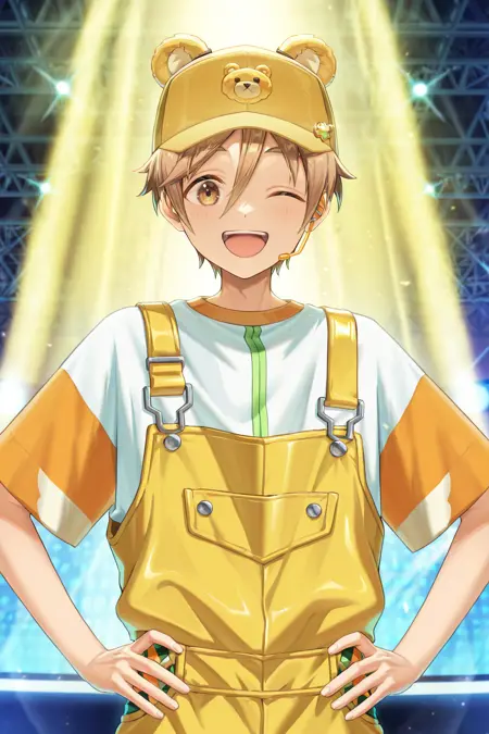 - 흰색 셔츠, 크롭 탑, 파란 반바지, 선원 칼라, 분홍색 헤드밴드, 분홍색 리본, 분홍색 팔찌