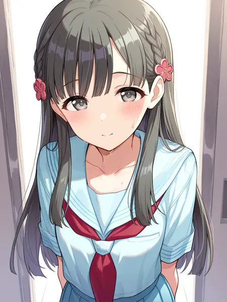 blue sailor collar,blue serafuku,blue shirt,blush,red neckerchief,
