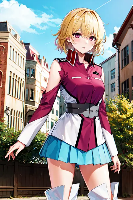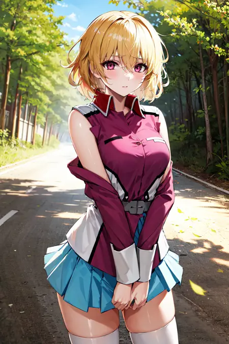 outfit1(軍服)sl1, 1girl, short hair, messy hair, military uniform, skirt, thighhighs