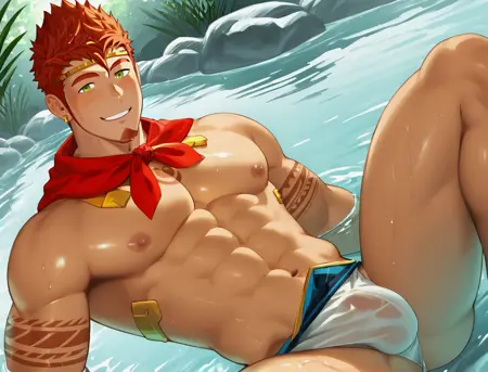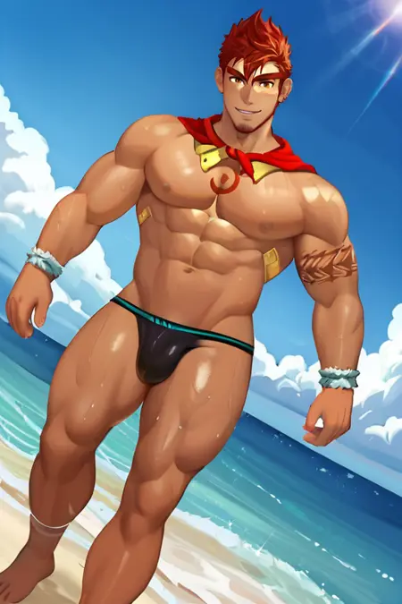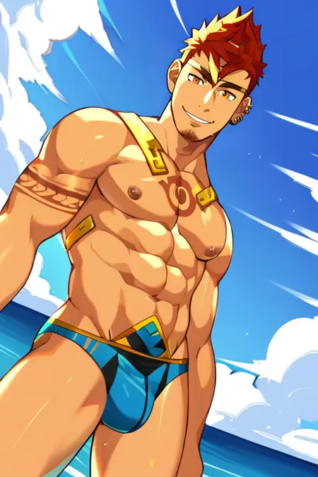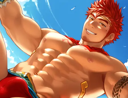 标签:Kong_Gyee_H,单人,看向观众,微笑,短发,1个男孩,肚脐,内衣,乳头,男性焦点,大腿,红发,深色皮肤,腹部,橙发,纹身,肌肉发达,面部毛发,粗大腿,腹肌,深色皮肤男性,胸肌,肌肉男性,法杖,暴露的服装, bara,大胸肌,隆起,裸上身男性,鬓角,成熟男性,山羊胡,裸露胸肌,长鬓角,短裤,..
