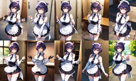 服装3(猫咪女仆装)日向美弦,单人,假兽耳,白色过膝袜,女仆帽,脱袖设计,黑色裙子,白色围裙,无袖上衣,白色衬衫,黑色领结,荷叶边围裙