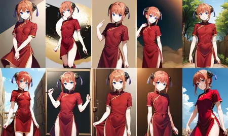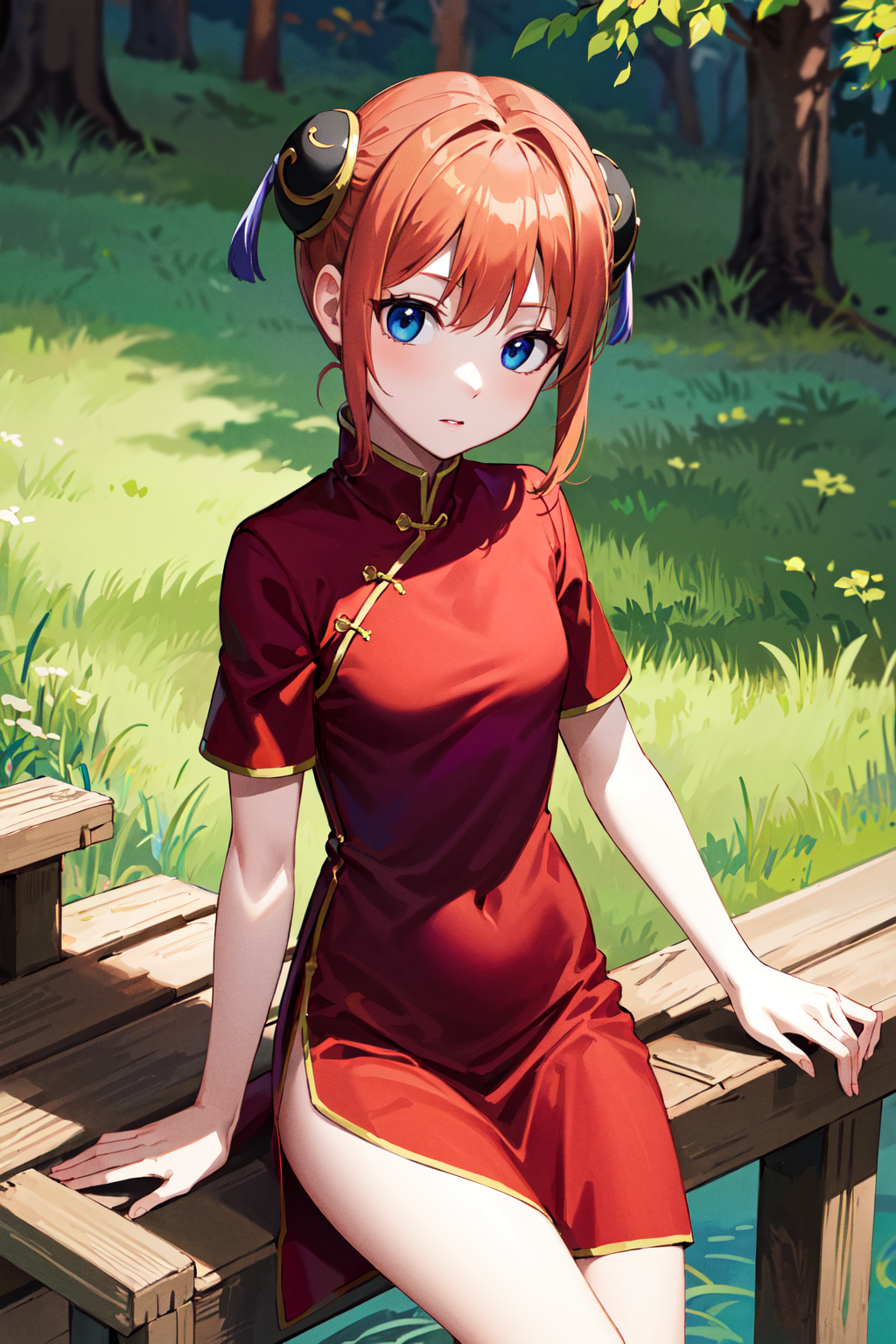 outfit1 (通常)kgr1, 赤いドレス, 二つ編み, お団子カバー, 中国服, 中国衣装, 膝丈ブーツ, 短い袖, 小さな胸