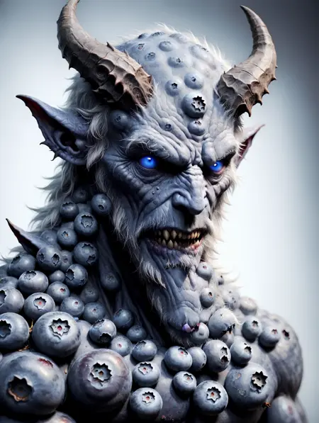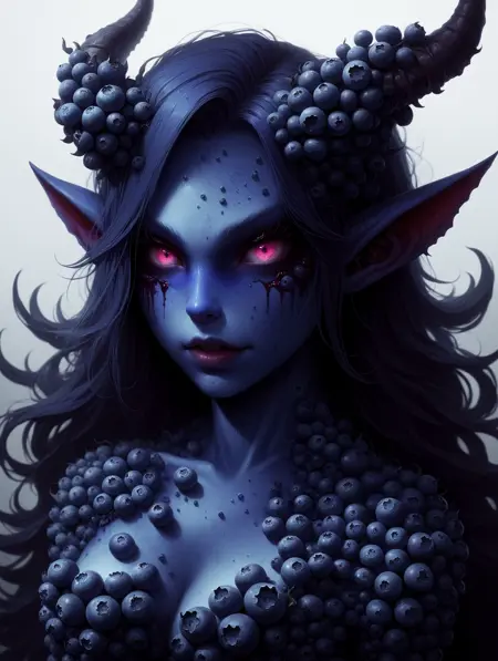 블루베리 미학: 이 모델은 블루베리의 고유한 특징—깊은 푸른 색조, 둥근 형태 및 자연스러운 질감—을 사람과 물체에 적용합니다.