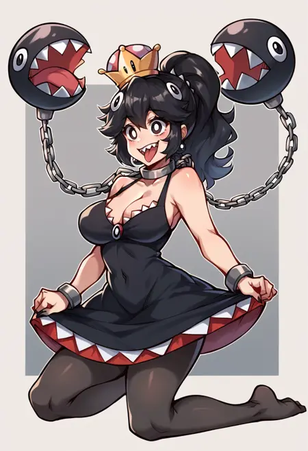触发词“ch0mp3tt3”和“black tooth dress”用于服装。
