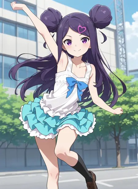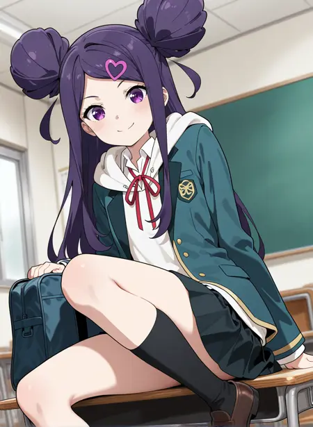 sekino_roko, 长发, 紫色头发, 双髻, 心形发饰