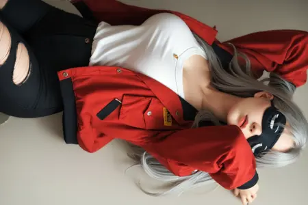 服装触发词:红色夹克、敞开式夹克、黑色裤子、破洞裤子、白衬衫、睡眠眼罩、长袖、毛皮镶边夹克