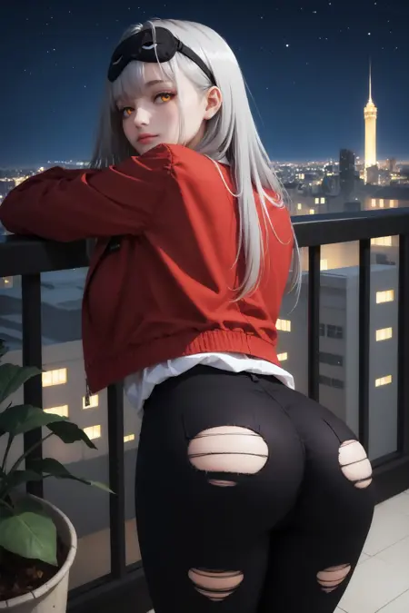 如果角色穿着裤子仰卧,我建议删除“破洞裤子”提示,因为她只有背后裤子是破的。