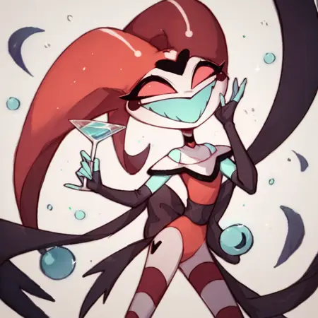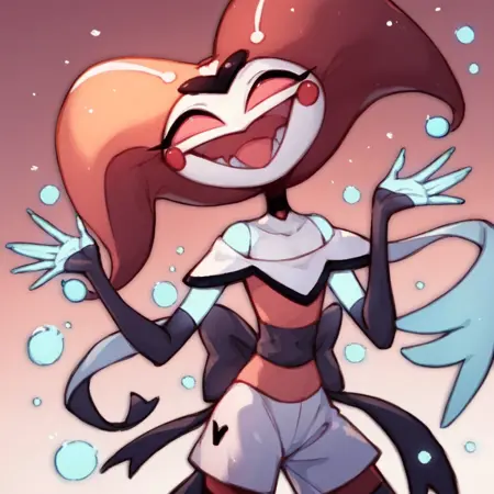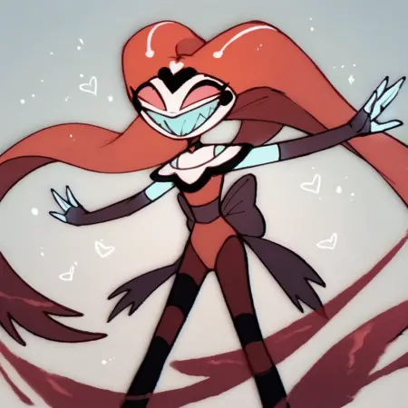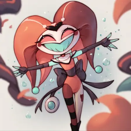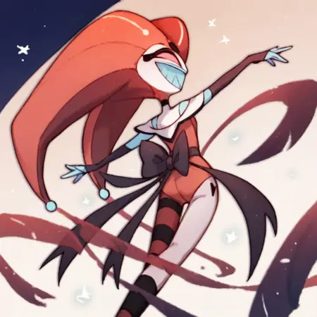 우울한 영혼이었던 저스터 키티는 사후 세계를 유유히 헤매며 기이한 매력으로 하즈빈 호텔의 주민들을 사로잡았다. 그녀는 본성적으로 장난꾸러기였고, 즐겁기도 하고 무서우기도 한 환영을 만들어냈다. 그녀의 신비로운 과거는 인간 세계에서 타락한 연예인이라는 소문이 돌았으며, 그녀의 장난스러운 행동에도 불구하고, 구원과 목적에 대한 깊은 갈망을 품고 있었다. 웃음과 혼란을 통해 저스터 키티는 망각된 영혼들의 세계에서 자신의 자리를 찾고자 했다.