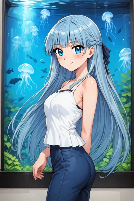 MKR_Umi_SU,blue hair,very long hair,blunt bangs,blue eyes