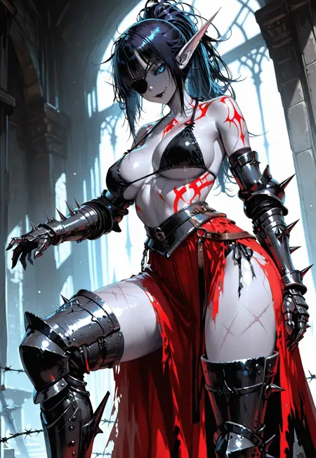 这些风格适合什么?死亡骑士、亡灵、灰皮肤、从头到脚的疤痕与纹身、铁丝网、凌乱造型、破烂衣物、魔兽世界相关元素、鲜血、血腥等……