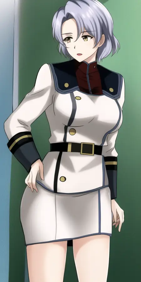 Naval_uniform_White_jacket_White_pencil_skirt_miniskirt_Belt_long_sleeves_turtleneck: Her uniform