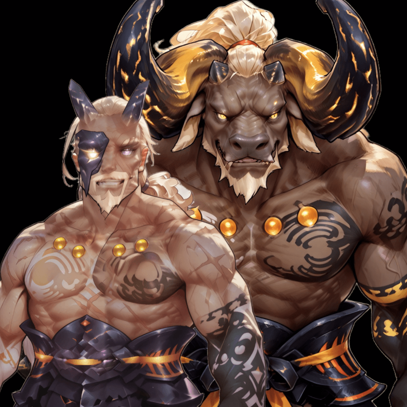 견공 형태(명예 전용): 아기토카이, 괴물, 반인반수, 인체형 소, 미노타우르스, 금발, 긴 머리, 단발, 노란 눈, 뿔, 수염, 색이 있는 피부, 회색 피부, 근육질, 문신, 흰 팔 1개, 검은 팔 1개, 갑옷으로 둘러싼 허리, 꼬리, 갈퀴발,