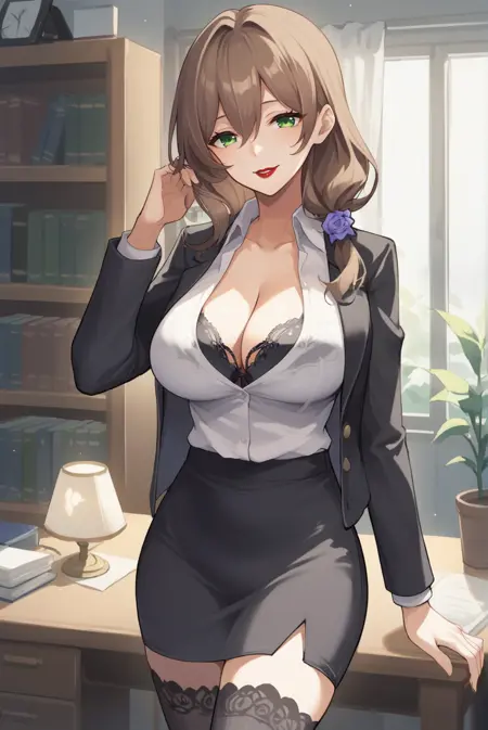 mature female, large breasts,