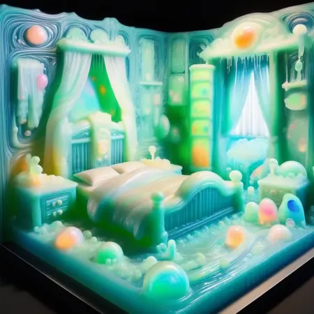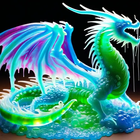 Slime world morph. Intended to get a specific texture and appearance out of slime and latex objects. It should be a translucent and almost luminescent material, but this is helped by using those tags in your prompt.