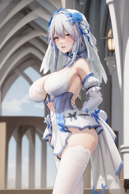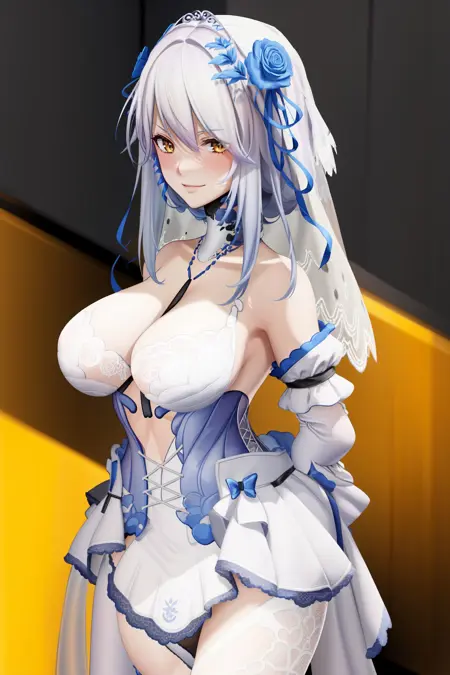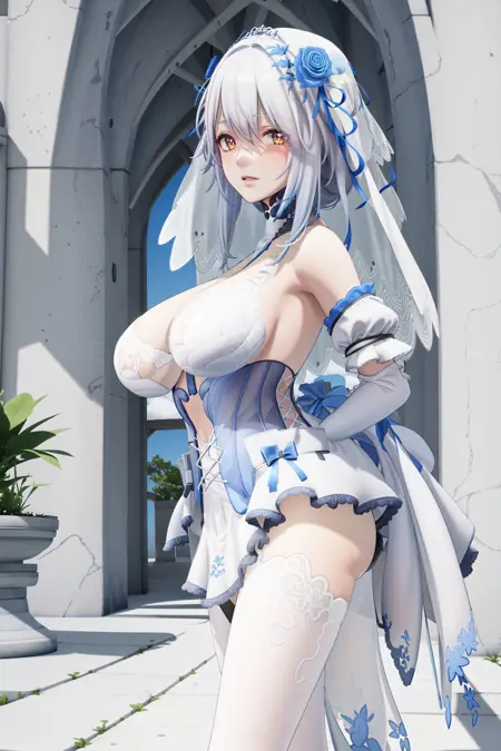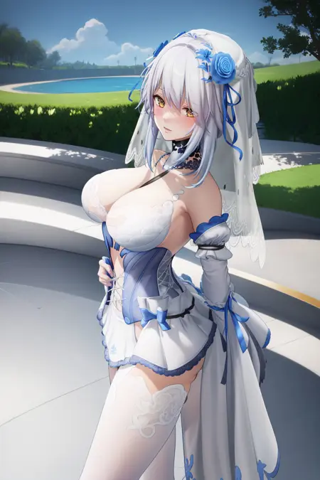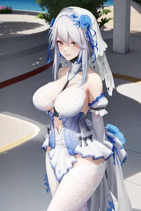 드레스, 베일, 헤어 플라워, 레이스 트림, 리본, 히지하이, 하이힐
