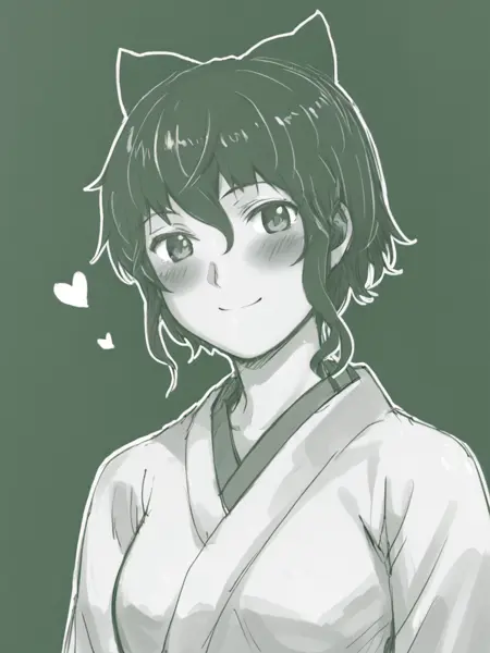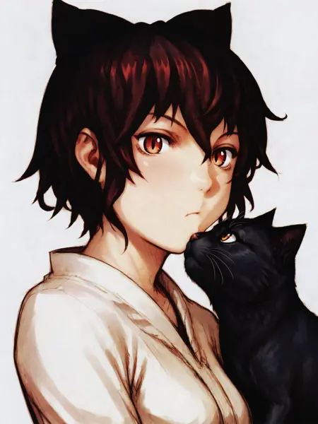 Well this is more or less the Taishō era (in 1922) ver. of Lain with black cat ears (bow) known as Ain.