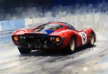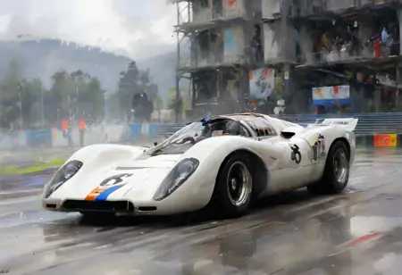 This lora generates images of some of the most beautiful cars of all time, 1960's mid-engine race cars and street cars. The cars included are: Alfa Romeo 33 Stradale, Ferrari 312P, Ferrari 330P4, Ferrari 512M, Ford GT40, Ford P68F3L, Jaguar XJ13, Lola T70, Mclaren M8, Lamborghini Miura, Porsche 908, Porsche 910, and Porsche 917. You can sometimes get mixes by prompting for multiple types of cars and adjusting the tag weights, but I've found this difficult for now. A fix is in the works. Works great with stock SDXL 1.0 and all the other loras I've tried. For your use of this lora, all I ask is that you give me credit.