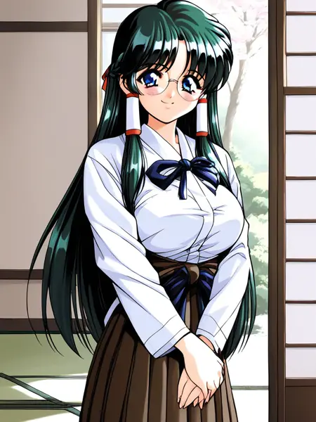 「聖少女戦隊レイカーズ」よりソウルレイカー、氷川弥生ちゃんです。巫女さんです。眼鏡はかけてるときとそうでない時があったりシリーズで髪の毛の色が緑だったり黒だったりキャラ設定がなぜか1作ごとに変化してたりと何かと不遇な女の子。一説には開発スタッフに愛されておらず、冷遇されていたために設定がいい加減なんて話まであります。2の黒髪&ヘアチューブのデザインが一番好きなのでサンプルも黒髪率多め(3だとヘアチューブ無くなって緑髪 ただ瞳の色だけはシリーズ共通で青)