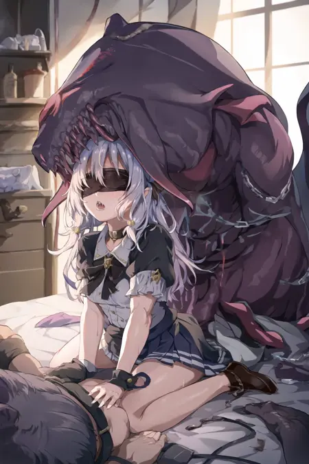 What does it do you ask? Uh oh, your waifu has been captured and defeated in her fight against the villains! Now they've captured her and she's... Well, she's not going to have a great time. Or maybe she will? It really just depends on how you prompt it. Overall, the more weight you add to this Locon, the more broken and defeated your waifu will be in the image. A light weight will just guide it. A heavy weight will let it take over. And then you can prompt it however you want. Importantly, I did decide to train it where usually there is another character in the scene, so solo images can be done but require more effort. If people are interested in me emphasizing more solo usage let me know.