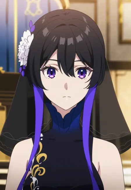 (two_tone_color_hair,woman,black_veil,black_sleeveless_chinese_dress,:1.1),
