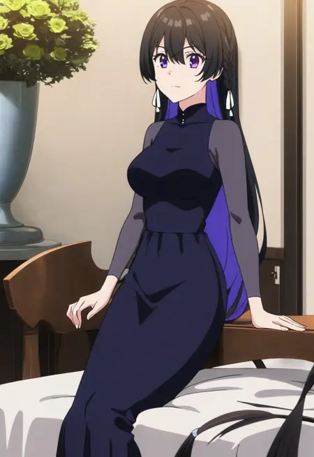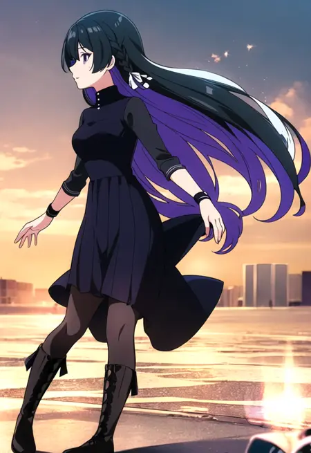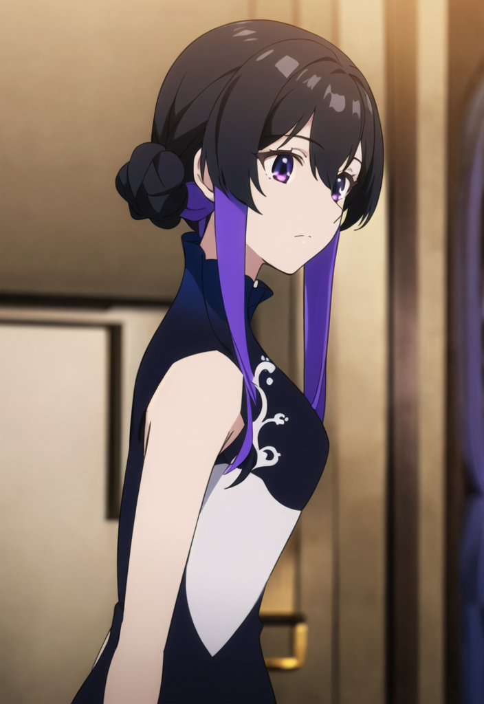 (colored_inner_hair,teenage,black_dress,:1.1),