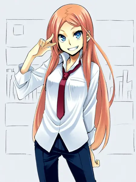 Anri: sogahara anri, black hair, long hair, hair between eyes, hairclip,
