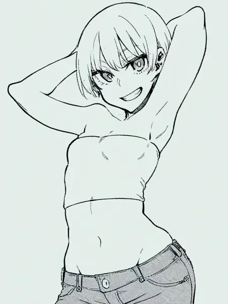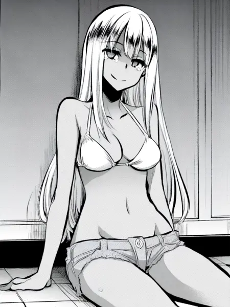 • yoshida saki, dark-skinned female, long hair, white hair,