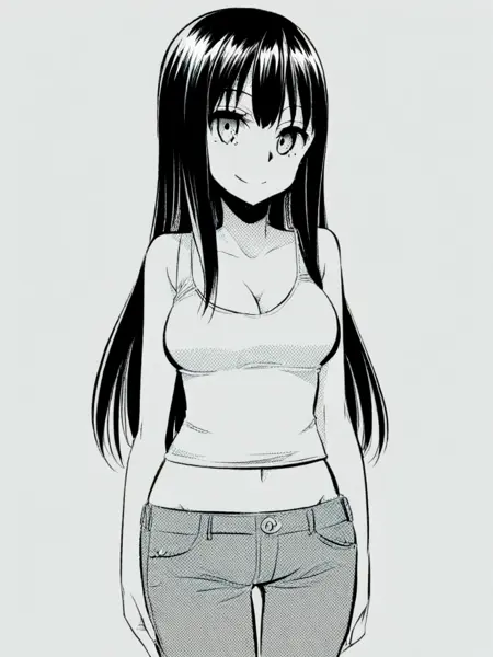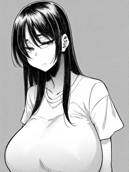 • Anri: sogahara anri, black hair, long hair, hair between eyes, hairclip,