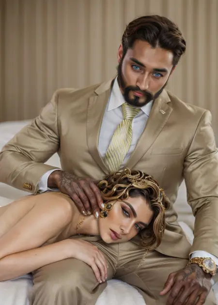 lora:holimFT15\_p0-step00000500:0.8, {holim, }{1girl, }{necktie, |||}{dark skin, |||}{dark-skinned male, }{formal, |||}{suit, |||}{watch, |}{realistic, |}{wristwatch, |}{1boy, }{lips, |||}{jacket, ||||}{facial hair, ||||}{very dark skin, ||}{looking at viewer, ||||||}{lying, ||||||}{photorealistic, ||||||||||}{pants, ||||||||||||||}{brown pants, ||||||||||||||}{sitting, ||||||||||||||||}{male focus, ||||||||||||||||||||||}{yellow necktie, |||||||||||||||||||||||}{beard, ||||||||||||||||||||||||}{gloves, |||||||||||||||||||||||||}{shirt, |||||||||||||||||||||||||||}{nude, |||||||||||||||||||||||||||}{lap pillow, |||||||||||||||||||||||||||}