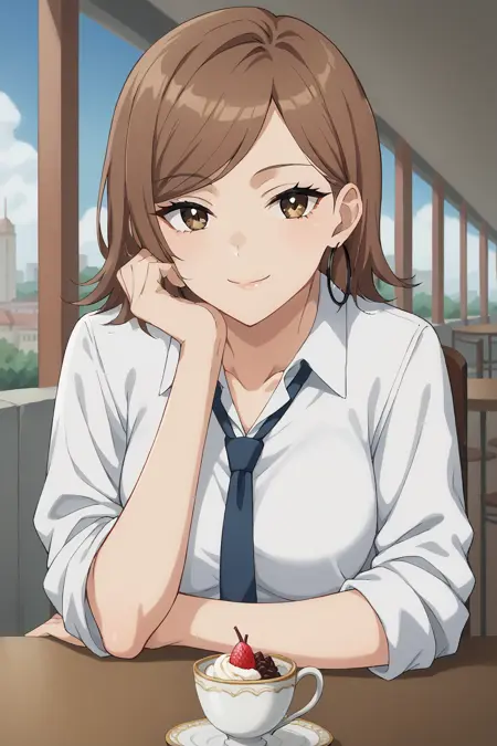 KJODaia, 棕色头发, 浅棕色眼睛, 短发, 刘海侧分, 圆环耳环,