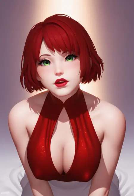 프롬프트 태그: 빨간 머리, 녹색 눈, 입술