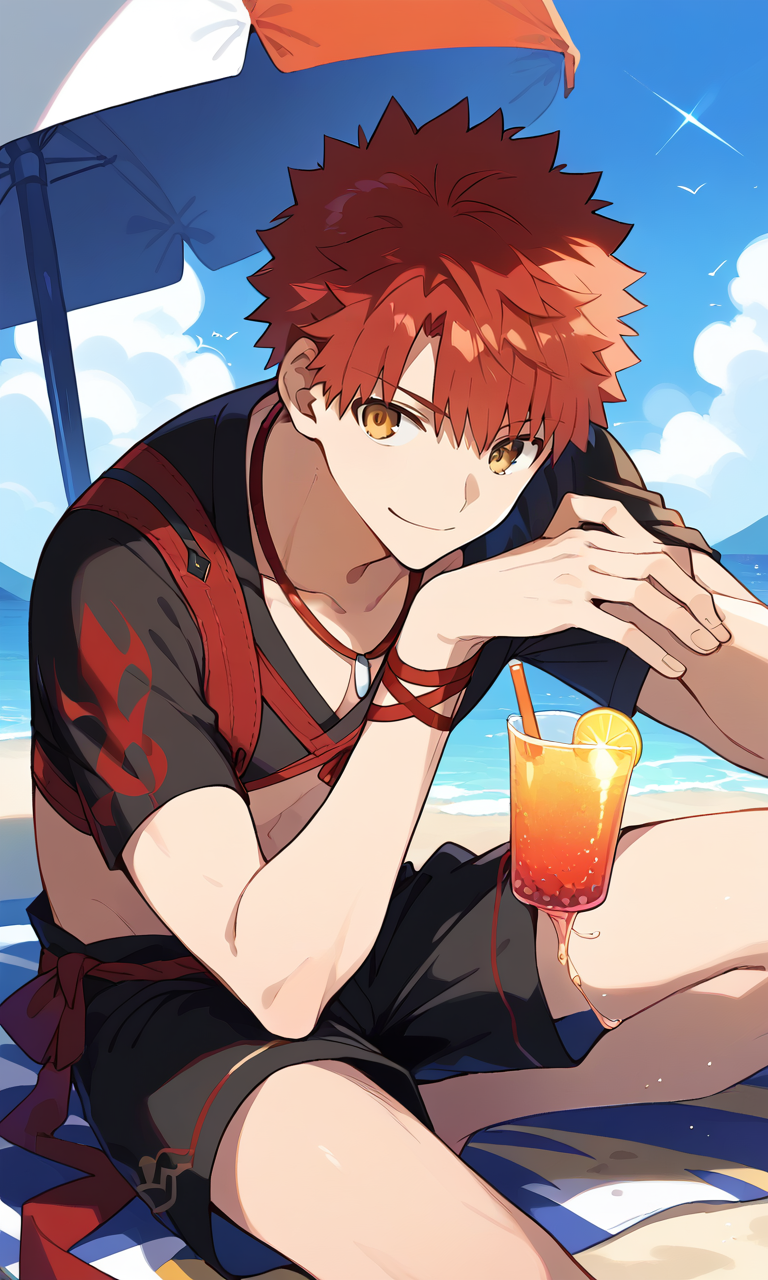 触发词:senji muramasa, emiya shirou, senji muramasa (fate), red hair, yellow eyes, igote,