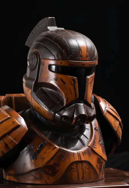 在多种古董木饰面上进行训练。该模型旨在生成带有雕塑及其他各种物体的温暖木纹。