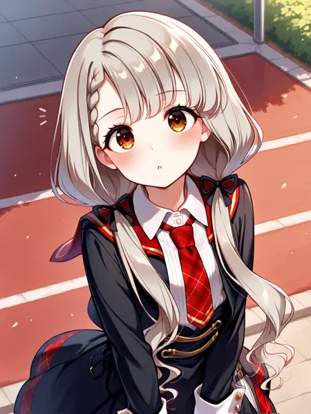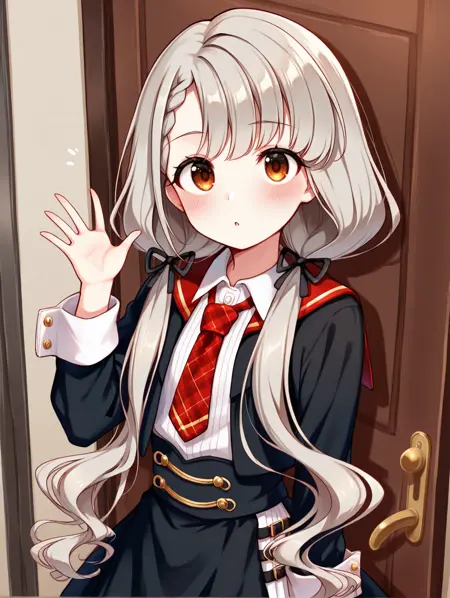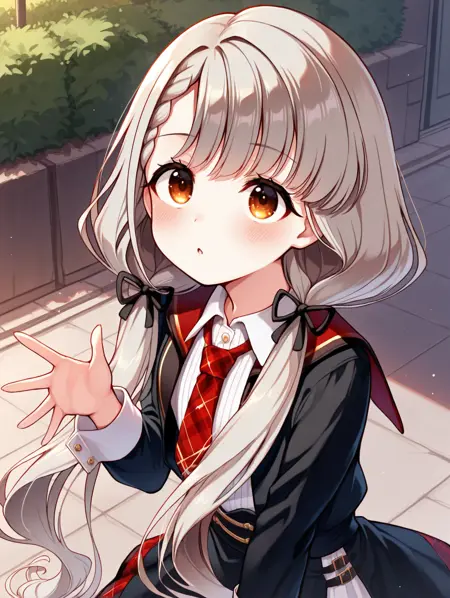 asymmetrical bangs, bow, bowtie, braid, braided bangs, grey hair, hair ribbon,