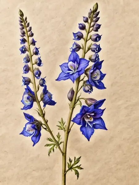 绣球花、蓝色绣球花、百合、葡萄风信子、风信子、马蹄莲、冬青、银杏、紫罗兰、羽扇豆、贝母、蓝色木槿、大丽花、郁金香、海岸百合、飞燕草、毛地黄、雾中情、乌头、天堂鸟、槲寄生、银莲花、百合、番红花、白兰花、松果菊、蓝铃花、黑莓和翠雀花。
