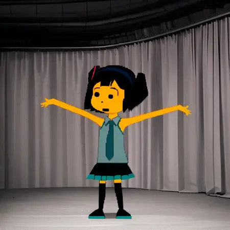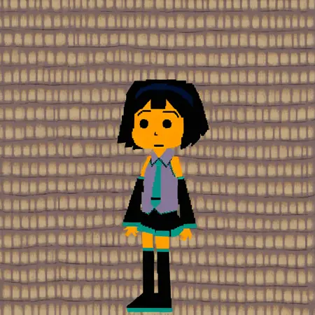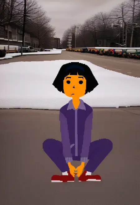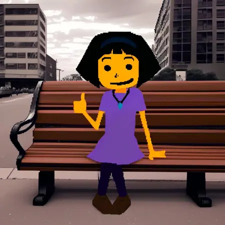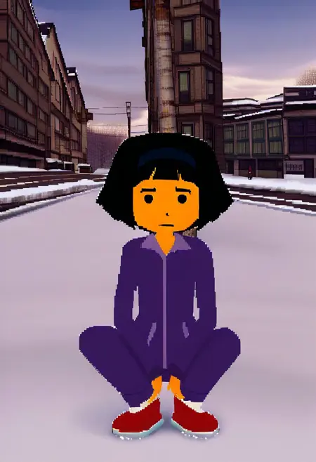 キャラクター用プロンプト: source_cartoon, ピクセルアート, フラットカラー, オレンジ肌, ドット目, 瞳孔なし(「黒目」に置き換えるとDimension Qスタイルになる。オレンジ肌がデフォルトだが、トレーニングには「薄い肌」「濃い肌」を持つ副次的キャラクターや、Dimension Qからの「灰色肌」の存在も含まれている)