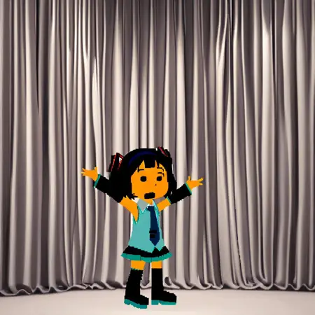 Costume Closetのイントロ衣装: マゼンタのタンクトップ、ピンクのベルト、青ジーンズ、青い靴