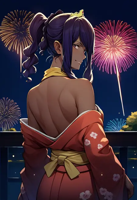 触发词 + 外貌: danmachiishtar, 深色皮肤, 马尾