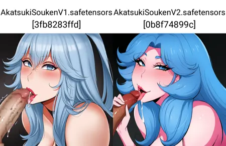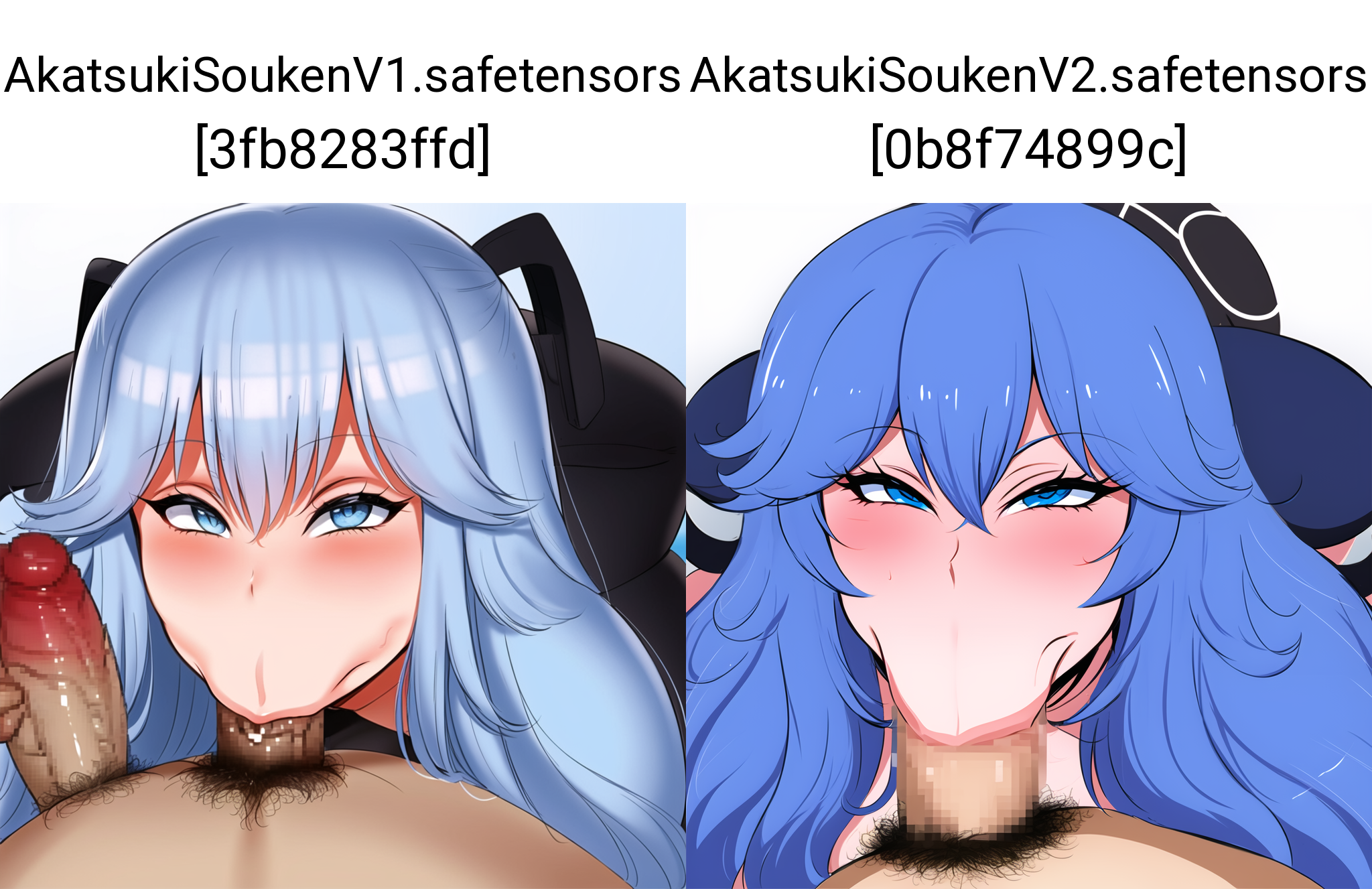 - The color and style changes. I used around half of his works that he ever published (I think, if not 50% then 25% for sure). Because there are volumes from years ago and more recent ones, the "style" he used to draw changed so this will be seen in the final result. It won't feel probably like Akatsuki souken the final output, but more like a "high quality" one. Which might be good or bad, depends on ur taste. I didn't try combining v1 and v2 (maybe that could make the style more like v1 if that's ur taste).