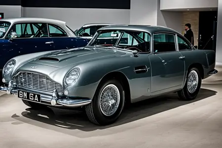 An Aston Martin db5, a grand tourer car manufactured in Great Britain between 1963 - 1965 and featured prominently in James Bond franchise