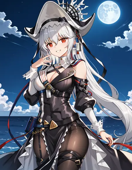 Specalter, two-tone dress, alter_shoulder_strap, alter_dress, cleavage cutout, alter_hat, alter_pantyhose, alter_detached_sleeves