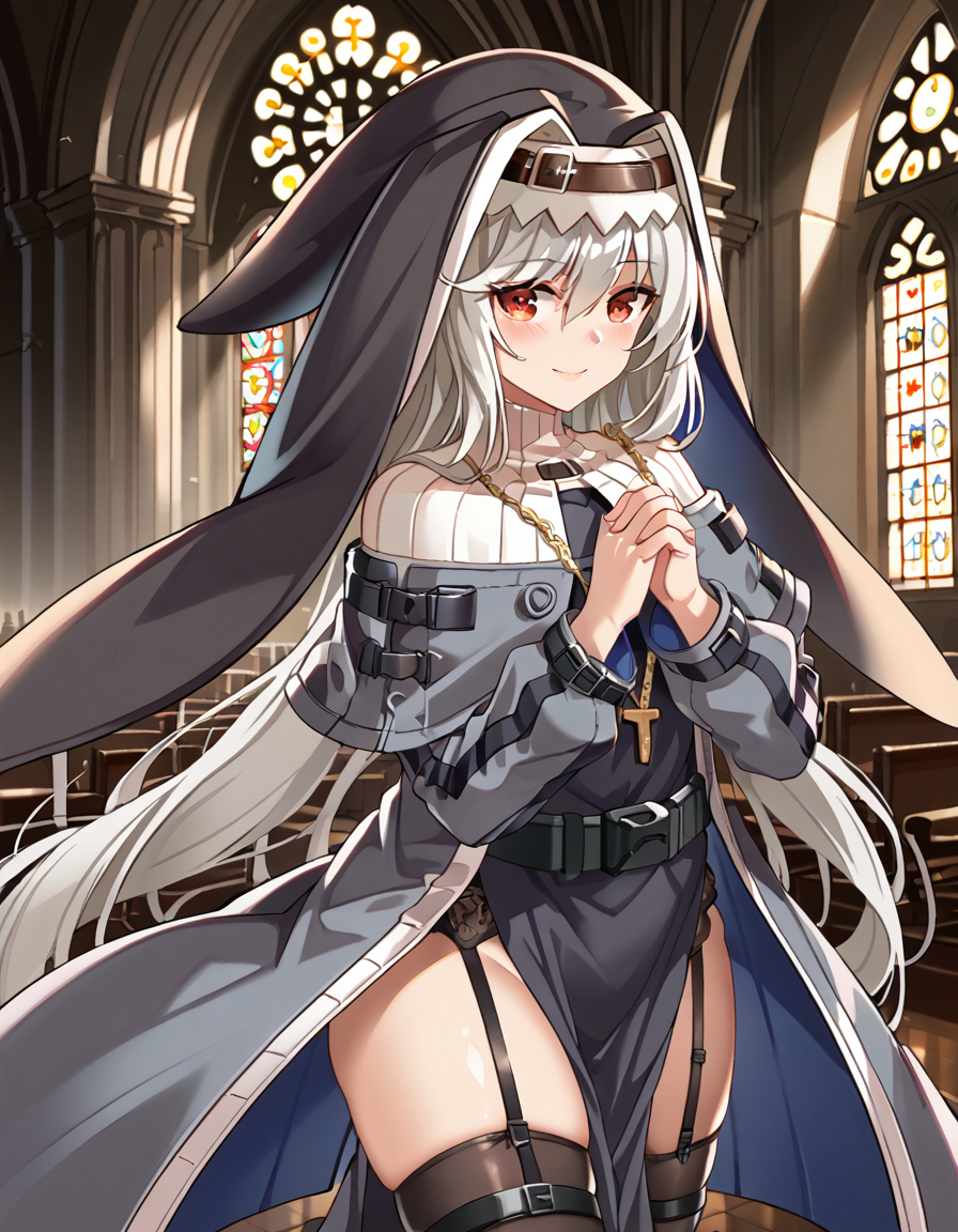 SpecNun, Nun_dress, Nun_capelet, Nun_habit, Nun_necklace, Nun_thighhighs, Nun_belt, garter straps