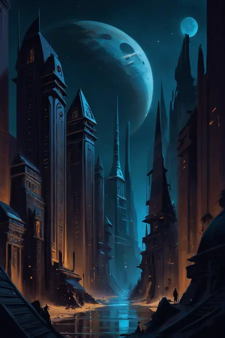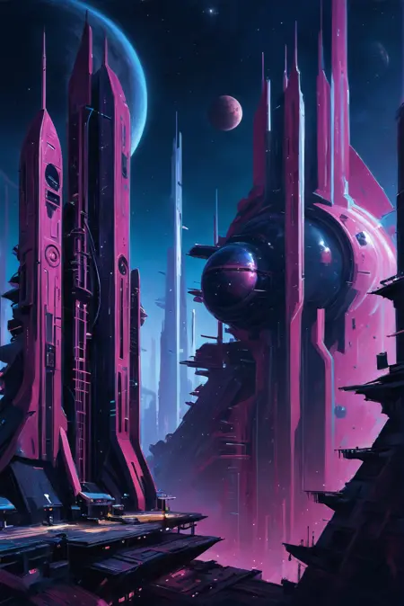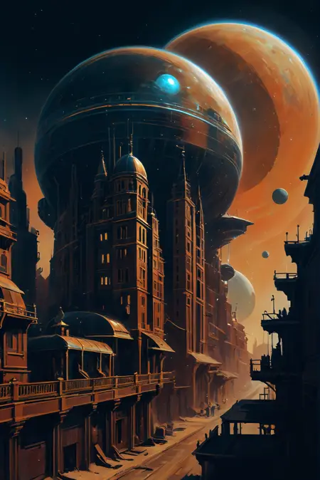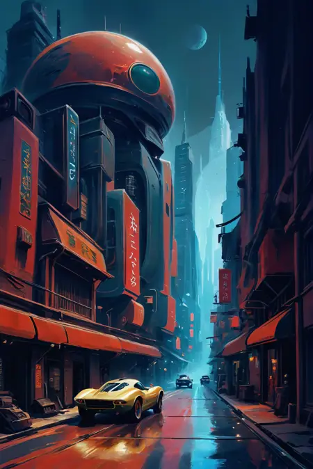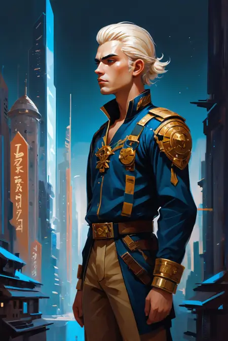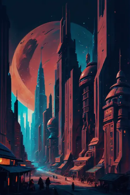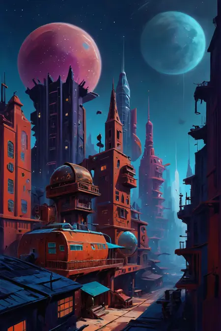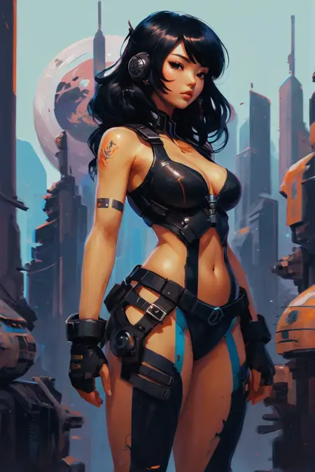 An "astropunk" style LoRA. See the tabs on top. There's one for cities and one for character portraits.