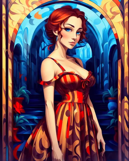 Nouveau Art style is a classic illustrated style. This Lora does a lot of geometric designs and is biased towards flat vector illustration.