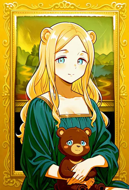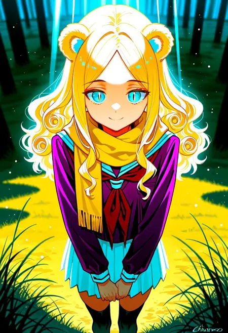 Hoji-hoji, long hair, pale blonde hair, curly hair, animal bear, fluff on the ears, (light blue eyes:1.1)
