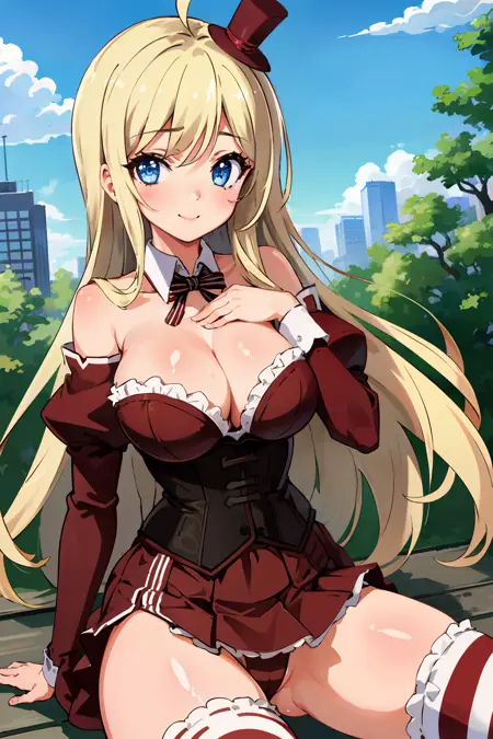 | 训练词汇 | chocolat_wz, long hair, blonde hair, blue eyes, long hair, ahoge, breasts, cleavage, mini top hat, top hat, striped thighhighs, zettai ryouiki, striped clothes, detached sleeves, bare shoulders, corset,puffy sleeves, red dress, detached collar, ribbon已复制! chocolat_wz, long hair, blonde hair, blue eyes, long hair, ahoge, breasts, striped thighhighs, blue eyes, striped clothes, necktie, school uniform, zettai ryouiki, blazer, red jacket, pleated skirt, grey skirt, red thighhighs已复制! chocolat_wz, long hair, blonde hair, blue eyes, long hair, ahoge, frilled bikini, striped bikini, striped clothes, vertical-striped bikini, breast, bow bikini已复制! |