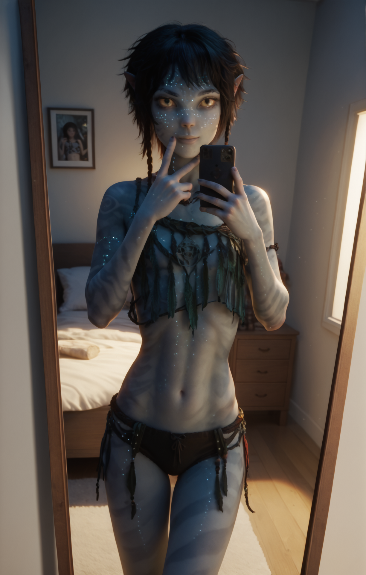 ジェームズ・カメロンの映画『アバター:ウェイ・オブ・ウォーター』に登場するグレース・オースティンのアバターの生物学的娘であるナヴィの少女キリの画像で学習されました。