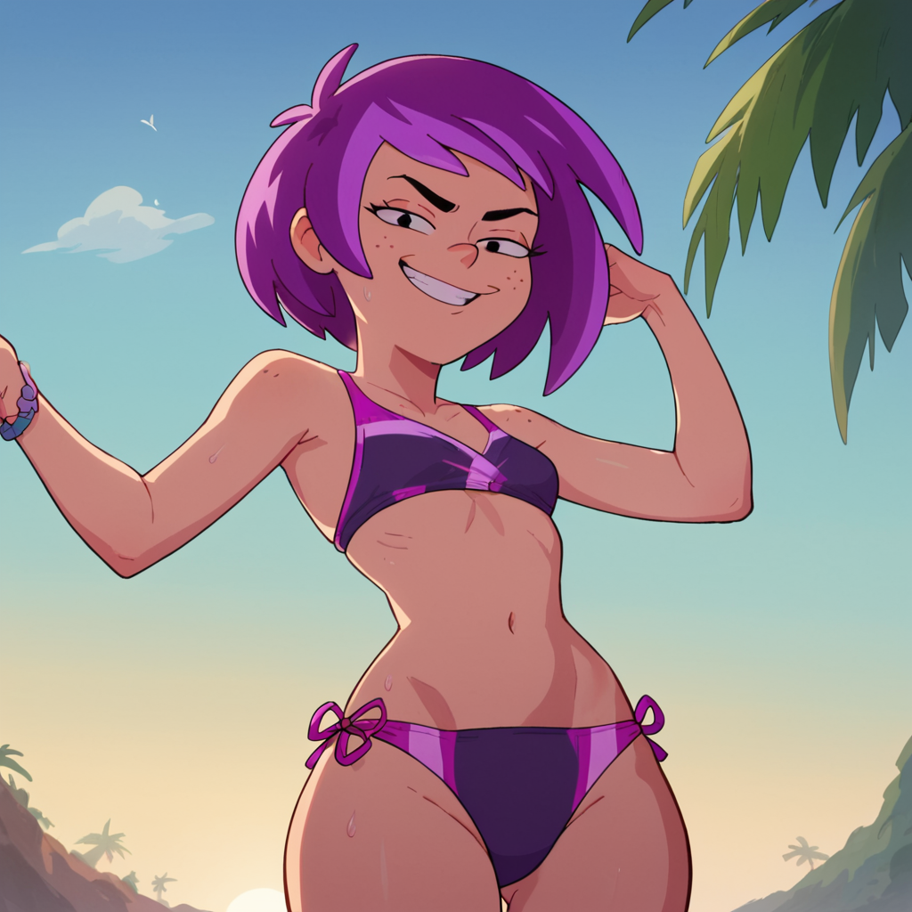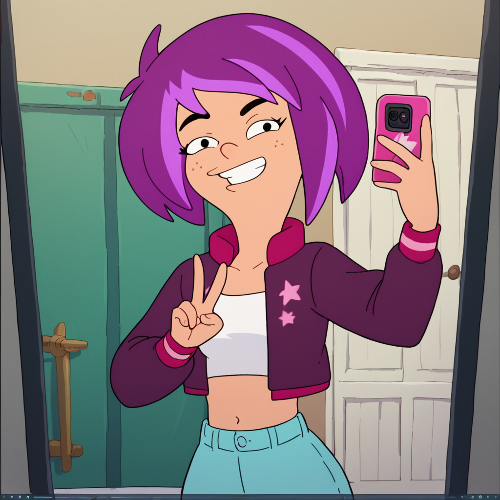 (Also, I added her makeover look from that one vacation episode. It's a little wonky given the limited material, but there if you wanna mess around with it. Just change "purple hair" to "blonde hair")