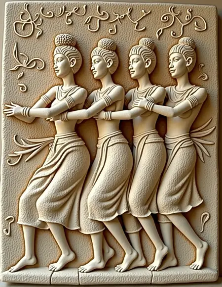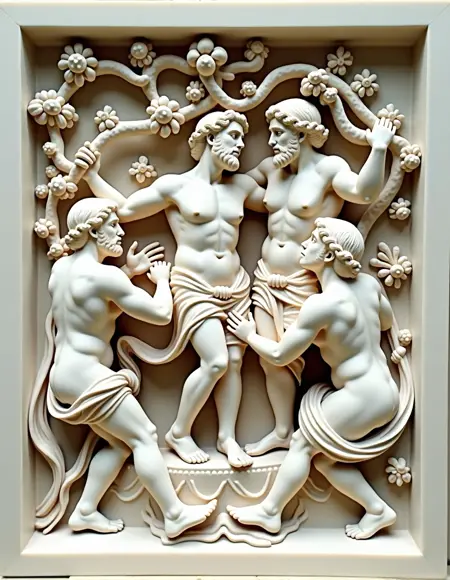 浅浮き彫りの彫刻は、場面や物語、装飾的なパターンを描くことが多い。その奥行きや細部の表現は、繊細で控えめなものから、より強調され複雑なデザインまで、多様なレベルに及ぶ。